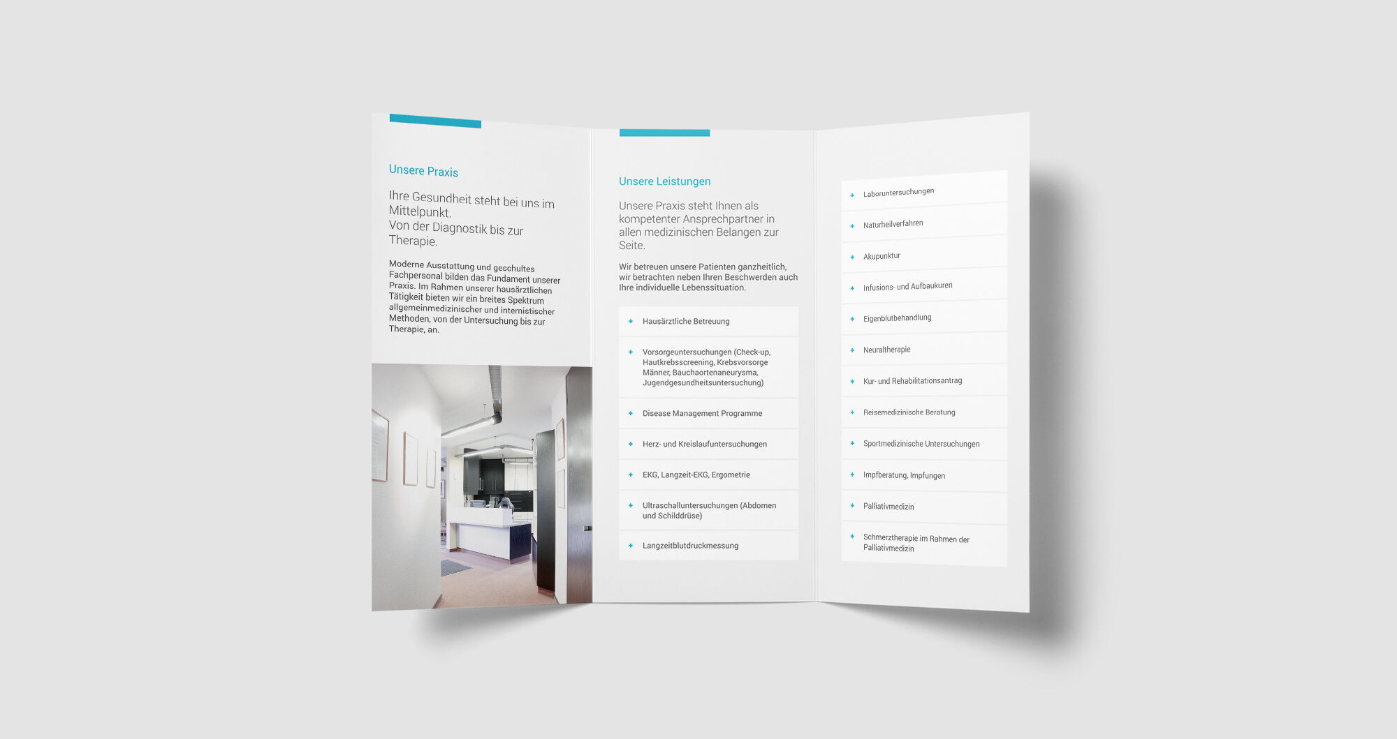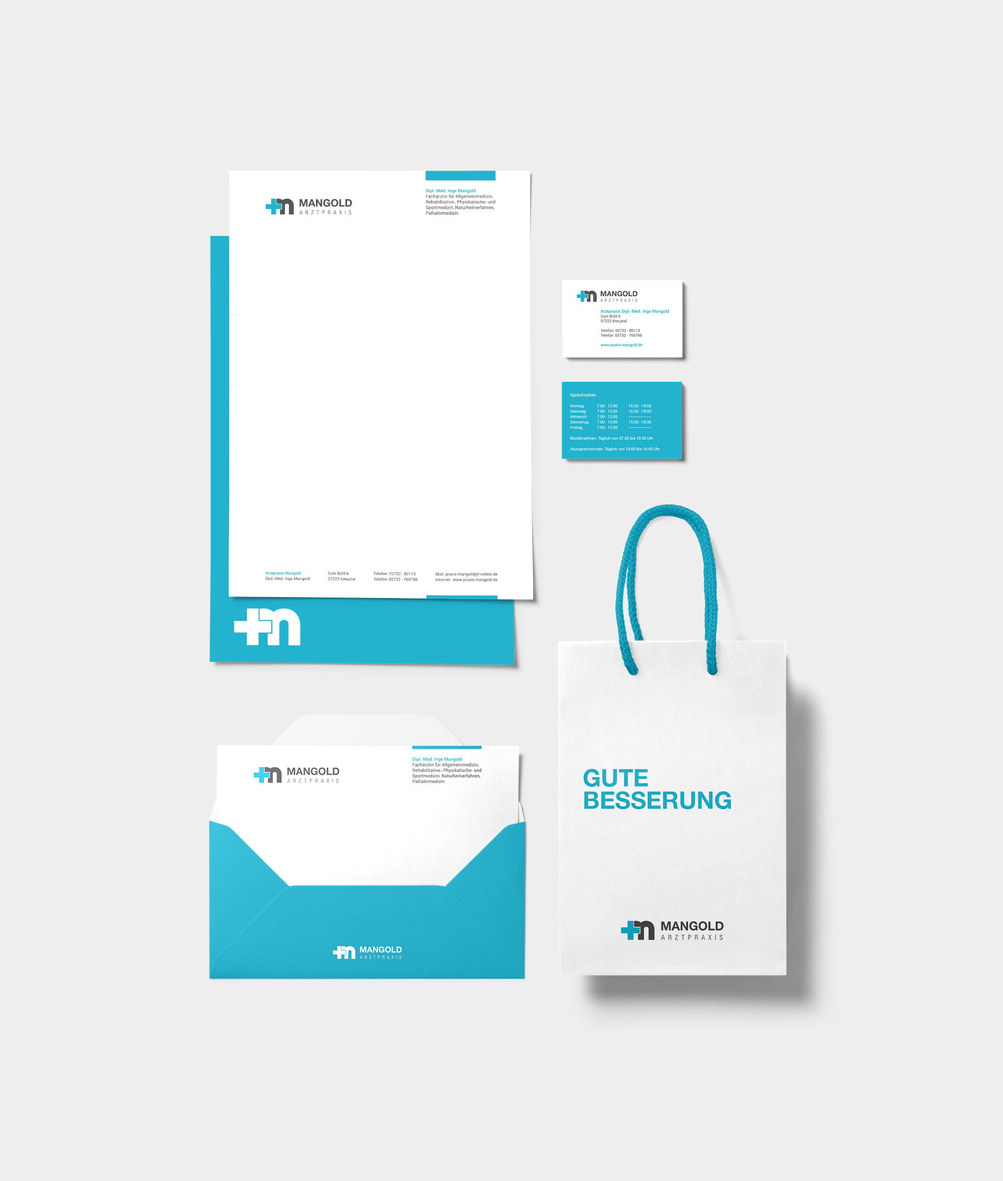 Ein modernes und freundliches Branding, eine informative Internetseite und eine passend abgestimmte Geschäftsausstattung, bietet dem Patienten einen vertrauensvollen Gesamteindruck.